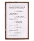 Bind these commandments to your heart and teach them diligently to your children when you walk or when you sit. Hold these truth ever before you. Hang this wall art in your home to inspire and educate - and live out your faith every day. Each commandment is numbered in gray and includes large, block lettering for easier readability. The text is written in bold black uppercase lettering. The wall plaque is framed with wood and hooks are included for hanging purposes.