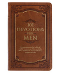 The 101 Devotions for Men Tawny Brown Faux Leather Devotional features 101 powerful devotions and supporting Scripture verses to inspire men to rely on God's strength and stand firm on the truth of His Word.