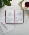 In addition to the beautiful faux leather cover, other luxury features include a satin ribbon marker and gilt-edged pages.