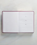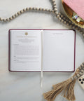 The prayer guide features gilt-edged pages that correspond well to the gold-foiled details on the cover and a satin ribbon marker that will guard your place. The already sturdy construction of the book is reinforced with topstitching around all the edges and seams.
