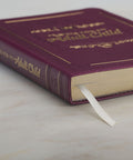 The elegant cover of the prayer and journaling guide features a rich plum faux leather cover with a tasteful design. An elaborate heat-debossed border with detailed corner scroll designs frames the cover and is accented with a gold-foiled shadow line. A second notched frame with detailed heat-debossed and gold-foiled filigree accents houses the gold-foiled title. The top of the frame indicates 199 prayers in large gold-foiled numbers.