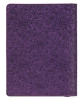 The purple faux leather cover is filled to the brim with a heat-debossed floral design. A smooth purple frame in th center displays the sentiment in gold-foiled letters. The year appears in the top right-hand corner.