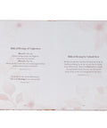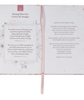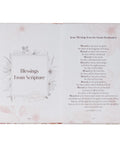 The prayer book is more than merely a collection of prayers; it is a treasure trove of blessings for all circumstances. It features a presentation page at the front that can be customized to make it truly yours. The interior pages are printed in two colors, and the floral motif from the cover is carried through to decorate the interior pages. Each daily entry features several Scripture verses followed by a blessing.
