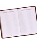 The A Book of Prayers Two-tone Brown Faux Leather Prayer Book contains 150 powerful prayers on a variety of topics and is the perfect prayer companion for every occasion. When you cannot find the words, but your soul longs to communicate with the LORD, turn to this prayer book with its down-to-earth prayers for help. God is intimately involved in every detail of your life, and this prayer book encourages you to pray about the smallest things because God cares about them and how they affect you.