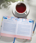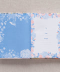 This hardcover devotional has a white cover that features bright florals in pinks, oranges, yellows, greens, and blues. An adorable blue hummingbird hovers near the orange-lettered title. The back shows the Scripture from John 1:16 in blue among more flowers, and inside, the two-color coral and blue interior makes the text come alive.