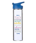 The A Great Teacher Glass Water Bottle is designed for those who can—mothers, fathers, teachers, Sunday school teachers, instructors, supervisors, mentors, homeschoolers, and everyone else who is pouring into the ones they care about.
