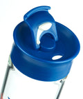 The royal blue plastic screw-on cap is leak-proof and has a flip-top lid that clicks shut to keep your drink from spilling. The lid also doubles as a carry handle, and the 2-inch wide mouth opening makes it easy to add ice to your drink. The reusable glass water bottle holds 20 fluid ounces of your favorite cold beverage and is eco-friendly. We recommend handwashing the water bottle in warm, soapy water. The glass water bottle is protected by a full-color printed cylinder gift box that makes a beautiful instant gift.