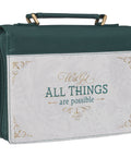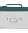 The All Things are Possible Teal Tourmaline Faux Leather Fashion Bible Cover is the perfect gift for any avid reader of God's Word. Bless a student or a Sunday school teacher with a gift that will remind her, every time she opens her Bible, that with God, she can persevere in all circumstances.