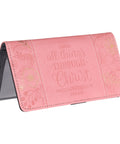 All Things Through Christ Pink Floral Faux Leather Checkbook Wallet - Philippians 4:13