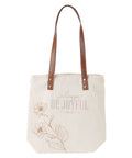Always Be Joyful Taupe Floral Canvas Tote Bag - 1 Thessalonians 5:16