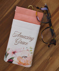 Share a message of hope and beauty with the Amazing Grace Cream and Coral Floral Faux Leather Double Eyeglass Case. This soft and stylish Bible verse eyeglass holder is a reminder of God's love and mercy—perfect for everyday use and encouragement.