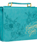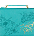Amazing Grace Floral Teal Faux Leather Fashion Bible Cover