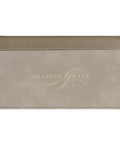 The Amazing Grace Taupe Faux Leather Checkbook Wallet blends understated elegance with a powerful message of enduring faith.