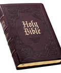 The Antiqued Dark Brown Faux Leather Giant Print Full-size King James Version Bible with Thumb Index is of heirloom quality. It will be a much-appreciated gift on a special occasion that marks a life event, such as an important birthday or rite of passage events, such as a baptism, graduation, or wedding.