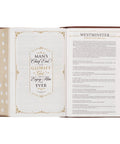 Delve into the rich history of the KJV Bible with a dedicated section that explores its tradition, text, and translation. Each book of the Bible is accompanied by an enlightening introduction. At the end of every chapter, you'll find personal or family devotions, fostering a deeper connection with the text. Thousands of explanatory study notes shed light on both the content and archaic language of the Bible. Explore 50 key teachings through insightful essays. A comprehensive concordance and 8 full-color maps offer valuable resources. The Bible also features a section on living life as a Christian, comprising 37 essays. Additionally, a brief synopsis of 20 centuries of church history is provided, along with ancient creeds, confessions, and catechisms, including the Apostles' Creed, Nicene Creed, Athanasian Creed, Belgic Confessions, Heidelberg Catechism, Canons of Dort, Westminster Confessions, Westminster Superior Catechism, and the Westminster Larger Catechism.