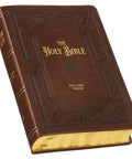 Art Nouveau Framed Toffee Brown Faux Leather Large Print King James Study Bible with Thumb Index