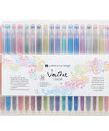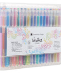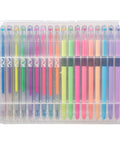 Each set includes 9 metallic pens, 9 glitter pens, 9 water chalk pens and 9 neon pens. Each vibrant gel pen has a 0.8 mm diamond tip (except for the metallic and glitter pens that have a 1.0mm tip) for smooth application to any type of paper. These vibrant gel pens come in a plastic travel case to take your creativity on the go.