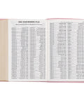 The Bible's lay-flat Smyth-sewn spine boasts six gold-foiled faux ribs and elegantly displays the title and version reference in heat-debossed letters. This Bible incorporates double-column formatting and 10-point type to make reading easy. This font is considered large for compact-style Bibles that usually have a much smaller print. Valuable resources, including a thematic Scripture verse finder, concordance, one-year reading plan, and eight full-color maps, assist in studying Scripture and gaining a deeper understanding of its context. The distinctive use of red ink to highlight Christ's words adds visual emphasis, making them prominent within the text.