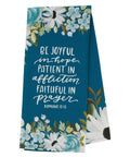 Be Joyful Blue Floral Cotton Tea Towel - Romans 12:12