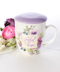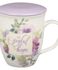 Be Joyful in Hope Lilac Lidded Ceramic Coffee Mug - Romans 12:12
