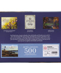 The completed puzzle measures 24 x 18, a perfect size to fit comfortably on standard coffee tables or rectangular coffee trays. It comes in a durable storage box featuring a full-color image of the completed puzzle—the perfect place to store it when not in use. Each puzzle piece is designed to interlock smoothly and stay firmly in place. This eco-conscious gift is crafted from recycled materials and printed with eco-friendly ink.