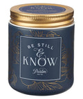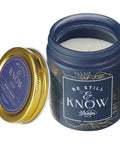 Let the soft aroma of the Be Still and Know Golden Rose Nordic Seaside Scented Candle in a Blue Glass Jar calm your senses as you find rest in the presence of God.