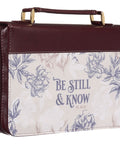 Be Still and Know Neutral Florals Faux Leather Fashion Bible Cover – Psalm 46:10