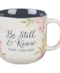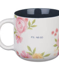 Be Still and Know Painted Peonies Ceramic Coffee Mug - Psalm 46:10