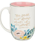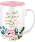 Be Still and Know Pink Floral Ceramic Coffee Mug - Psalm 46:10