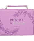 Be Still & Know Purple Laurel Faux Leather Fashion Bible Cover - Psalm 46:10