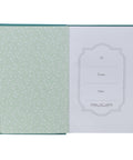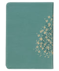 The classic journal has a teal faux leather flexcover with a large, heat debossed tree full of gold foiled blossoms that spans the front and back covers. A bird in flight draws your attention to the comforting heat debossed sentiment.