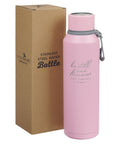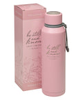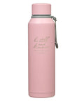 The pretty pink matte exterior of the stainless steel water bottle is laser-engraved with the sentiment. The sentiment is presented in a silver multi-font design.