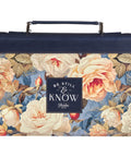 The gentle, unhurried growth and blooming of the roses on the Be Still Serene Roses Blue Faux Leather Bible Cover mirrors the spiritual practice of resting in God's timing and plans for your life. This gorgeous Bible cover will keep your precious Bible safe from daily wear and tear, and its message will bolster your heart against the daily assault of life.