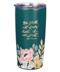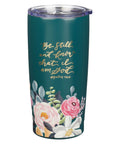 Keep a comforting, warm drink ready when you use the Be Still Teal Floral Stainless Steel Travel Tumbler for your morning coffee and morning devotions. The Be Still Teal Floral Stainless Steel Travel Tumbler also makes a particularly charming gift for a friend when you combine it with additional items from the collection.