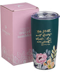 Be Still Teal Floral Stainless Steel Travel Tumbler - Psalm 46:10
