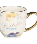 The serene design of the Be Still Watercolored Ocean Ceramic Mug supports the message: Be still and know that God is God.