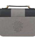 Be Strong and Courageous Gray and Black Faux Leather Classic Bible Cover - Joshua 1:9