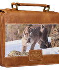 Be Strong and Courageous Mountain Lion Toffee Brown Faux Leather Classic Bible Cover – Joshua 1:9
