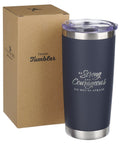 Express your gratitude and appreciation for the spiritual guidance provided by your pastor or mentor when you present him with the Be Strong and Courageous Navy Stainless Steel Travel Tumbler as a thoughtful gift to acknowledge the care he shows to the members of the congregation.