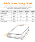 - Refer to Image Carousel for Bible Cover Sizing Chart
