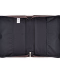 The Strong and Courageous Walnut-Brown and Tan Faux Leather Journal with Zipper Closure is a key part of the Be Strong and Courageous Walnut and Tan Collection, a series of items designed to uplift fathers on Father's Day. This collection includes a ceramic coffee mug, faux leather bookmark, faux leather journal, faux leather Bible cover, and a Giant print Bible, all featuring the same inspiring theme.
