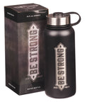 Be Strong Black Stainless Steel Water Bottle - Joshua 1:9