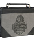 Be Strong in the Lord Black and Gray Lion Faux Leather Classic Bible Cover - Ephesians 6:10