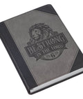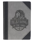 Be Strong in the Lord Black and Gray Lion Faux Leather Journal - Ephesians 6:10