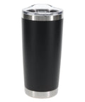This stylish stainless steel mug features a matte black exterior bordered by two sleek stainless steel bands. Its double-walled vacuum-sealed interior will keep your drinks at the perfect temperature for hours. Whether hot or cold, your beverage temperature will stay just right for your morning commute or a long afternoon at the office. The mug includes a clear plastic lid with a silicone ring and a retractable sip hole cover to help maintain temperature and prevent spills.