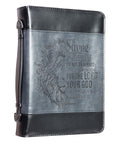Arm yourself with the Word of God wherever you go, and protect your Bible from harm with the Be Strong Lion Two-Tone Classic Bible Cover. You will be inspired to stay strong and courageous on your journey of faith every time you place your Bible inside this sturdy gray and black Bible cover.