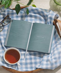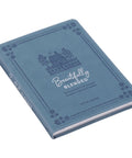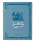The slate blue faux leather cover of Beautifully Blended features an elegant heat-debossed floral and dotted border that frames a flourishing house— a symbol of the vibrant home life Christ can bring.