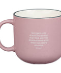 Dainty charcoal dots are scattered across the exterior of the pink mug. The sentiment is displayed in a crisp white font on the front.