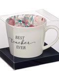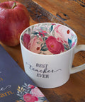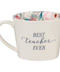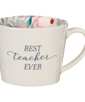 Best Teacher Ever Ceramic Mug in White with Floral Interior