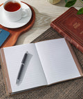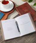 - Soft brown faux leather cover